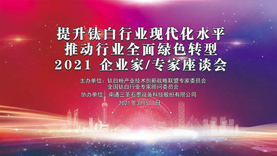2021年3月6日,由鈦白粉產業技術創新戰略聯盟專家委員會、全國鈦白行業專家顧問委員會主辦,南通三圣石墨設備科技股份有限公司承辦的2021年全國鈦白行業企業家/專家座談會在江蘇省南通市隆重召開。與會企業家、專家緊緊圍繞“提升鈦白行業現代化水平,推動行業全面綠色轉型” 會議主題開展了熱烈而務實的座談討論,就各自單位、各個領域2021年度的工作規劃和關注問題進行了交流探討。會議為全國鈦白行業響應黨的十九屆五中全會通過的《中共中央關于制定國民經濟和社會發展第十四個五年規劃和二〇三五年遠景目標的建議》統一了思想,吹響了鈦白行業全面綠色轉型的號角,同時,討論、宣布了一系列提升鈦白行業現代化水平的具體舉措,對全國鈦白行業2021年乃至整個十四五期間的發展具有重要的指導意義。