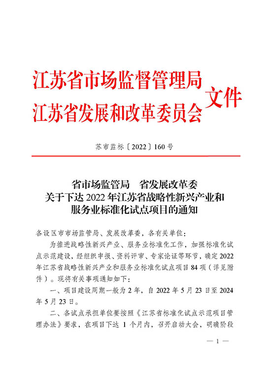 南通三圣標準化工作再傳捷報,公司申報的“石墨設備標準化試點”項目獲得江蘇省市場監督管理局、江蘇省發展和改革委員會正式立項,成為2022年江蘇省戰略性新興產業標準化試點41個項目之一,也是南通市獲此立項的兩個項目之一 。