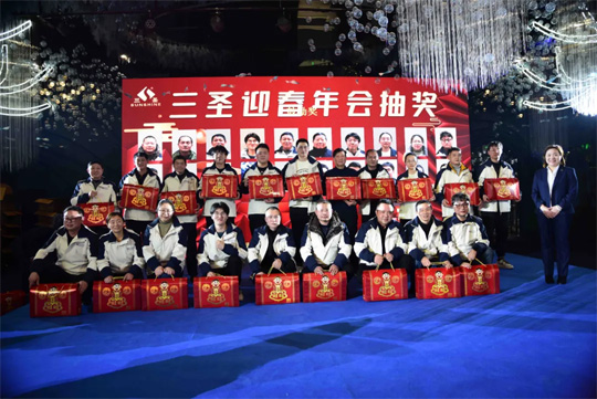 會場的三圣人很快樂,但也不能忘了依然在各個(gè)工地中堅(jiān)守崗位的其他同事。通過現(xiàn)場視頻聯(lián)系,也向他們送去了新春的祝福。